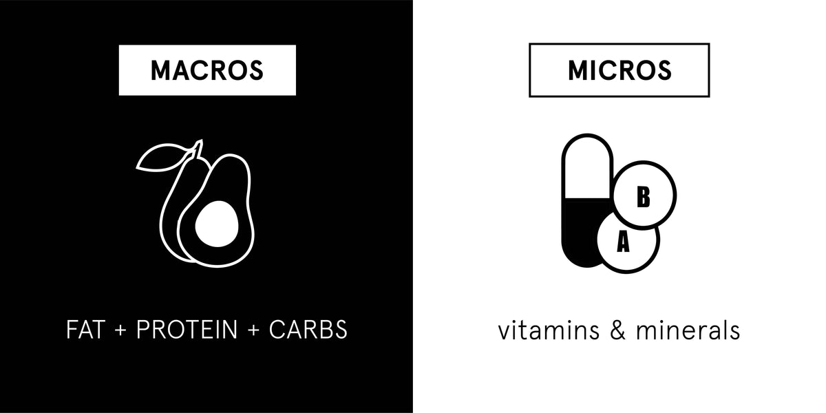 In addition to “counting” macronutrients, being mindful of micronutrient intake is also important to support a healthy, balanced lifestyle. Micronutrients are the vitamins and minerals present in food, but by weight make up much less of the food. These micronutrients are vital for health. but do not offer any energy in the form of calories. Examples of micronutrients include sodium, potassium, zinc, calcium, and Vitamin C, and Vitamin D. Micronutrients are often listed below the macronutrients on a nutrition label. Most Americans do not consume enough choline, magnesium, potassium, and Vitamins A, C, D, and E¹. Eating more fruits, vegetables, whole grains, and fortified foods (such as Soylent) can help increase consumption of these micronutrients.